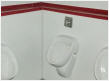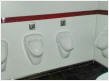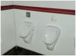 Auf der Herrenseite befindet sich eine Toilette, 6 Urinale und 1 Waschbecken mit Papierhandtuchspender und Spiegel.